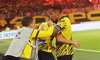 Έγινε ένα με τον κόσμο της ΑΕΚ ο Μιγιάτ Γκατσίνοβιτς μετά το γκολ που πέτυχε για το 2-0 της ΑΕΚ επί του ΠΑΟΚ.