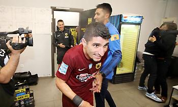 Λίγο αργότερα, εμφανίστηκαν οι παίκτες της ΑΕΚ, με τους οπαδούς της Ένωσης να κάνουν τη νύχτα μέρα από τα καπνογόνα, ενώ τα συνθήματά τους δονούσαν την ατμόσφαιρα την ώρα που εμπόδιζαν το πούλμαν να μετακινηθεί.΄