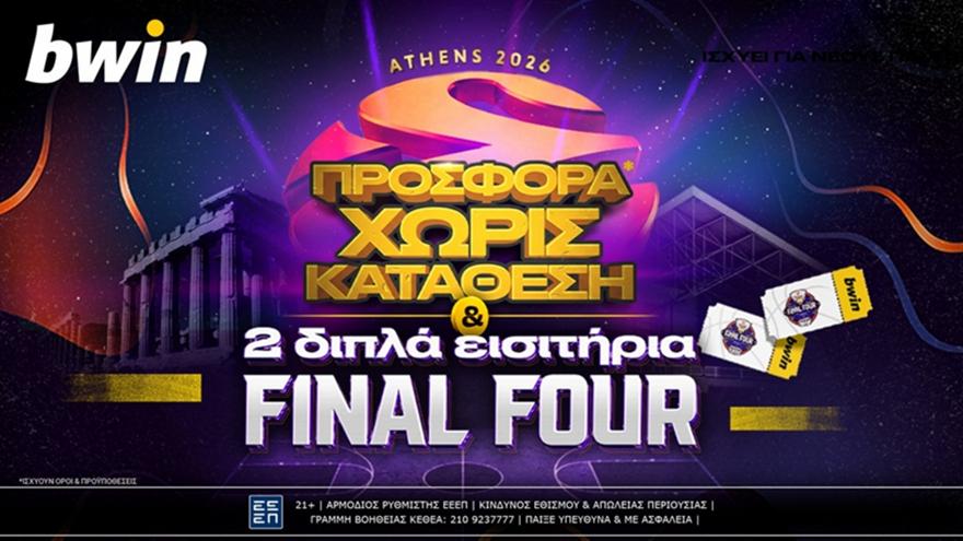 bwin – Ξεκινάς με 1.355 δώρα* χωρίς κατάθεση και δύο ΔΙΠΛΑ εισιτήρια για το Final Four!