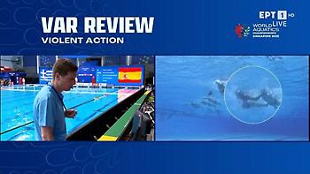 Στην πρώτη φάση του δεύτερου οκταλέπτου, η Εθνική άγγιξε την ισοφάριση, ωστόσο, για τρίτη φορά στο ματς, η μπάλα δεν μας έκανε το χατίρι, με το σουτ του Σκουμπάκη να σταματά στο δοκάρι. Και ενώ το ντέρμπι συνεχιζόταν, στο 18', μια αψυχολόγητη ενέργεια του Χαλυβόπουλου να ρίξει γροθιά εντός πισίνας και κάτω από το νερό σε αντίπαλό του, έφερε την Ελλάδα σε πολύ δύσκολη θέση. Και αυτό, διότι, οι διαιτητές τιμώρησαν με αντιαθλητικό και τετράλεπτη αποβολή χωρίς αντικατάσταση τον Έλληνα περιφερειακό.