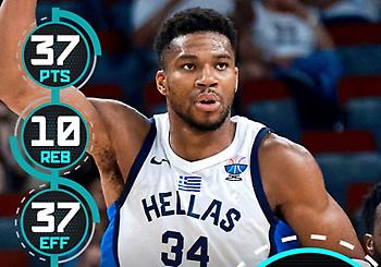 Ο Γιάννης πηγαίνει στις βολές μόλις 7,8 φορές κατά μέσο όρο και έχει εκτελέσει 31 συνολικά στα τέσσερα ματς που έπαιξε. Κόντρα στην Ιταλία είχε 3/4, στη Γεωργία 8/13, στην Ισπανία 7/12 και χθες απέναντι στο Ισραήλ 1/2.