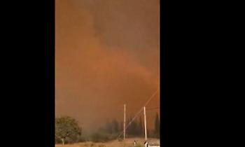 Σύμφωνα με πληροφορίες και με μαρτυρίες των κατοίκων η φωτιά απειλεί και το δρυόδασος της Φολόης.
