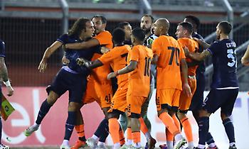 Μαουρίτσιο Σάρι και Λεωνίδας Βόκολος μπήκαν στον αγωνιστικό χώρο για να ηρεμήσουν τους παίκτες τους, με τον διαιτητή να μοιράζει κίτρινες κάρτες και την κατάσταση προσωρινά να αποκλιμακώνεται. Παρόλα αυτά, λίγο αργότερα ο Μανσούρ έκανε ένα σκληρό μαρκάρισμα στον Τάτι Καστεγιάνος και ακολούθησε... χαμός, με γενικευμένη σύρραξη.