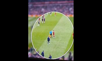 Τότε, εμφανίστηκε μπροστά του ο επόπτης με κυπριακές ρίζες, Κώστας Χατζηδάκης, ο οποίος φαίνεται πως ύψωσε τον αγκώνα του, βρίσκοντας τον αμυντικό της Λίβερπουλ στον λαιμό.3