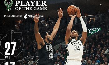 Ο Greek Freak είχε 27 πόντους (12/24 δίποντα, 3/10 βολές), 13 ριμπάουντ, 7 ασίστ, 1 κλέψιμο, 3 τάπες και 3 λάθη σε 37 λεπτά. Ο Λίλαρντ είχε 23 πόντους αλλά με 6/20 σουτ, ενώ ο Μπόμπι Πόρτις είχε 15 πόντους για τους Μπακς, που υποχώρησαν στο 17-15 και είναι πέμπτοι στην Ανατολή μαζί με τους Χιτ. Ο Κάμερον Τζόνσον με 26 και ο Καμ Τόμας με 20 πόντους ξεχώρισαν για τους Νετς, που με 13-21 είναι δωδέκατοι.