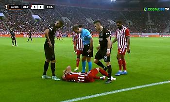 Οι Πειραιώτες έχουν δικαιολογημένα παράπονα από την απόφαση του Κουλμπάκοφ να μην αποβάλει τον παίκτη της γερμανικής ομάδας στο 30', με τον Μαροκινό σε διεκδίκησή του με τον Ρέαμπτσιουκ να τσακίζει τον αστράγαλο του Μολδαβού μπακ!