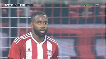 Μεγάλη ευκαιρία για τον Ολυμπιακό να πάρει εκ νέου προβάδισμα με 2-1. Ο Βρουσάι έβγαλε σέντρα ακριβείας για τον Σεντρίκ Μπακαμπού, αυτός έπιασε την κεφαλιά από πολύ κοντά, ωστόσο αστόχησε χάνοντας μεγάλη ευκαιρία.