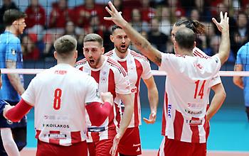 Παρότι αγωνίστηκαν χωρίς τον μεγάλο τους σταρ, Ατανασίεβιτς, ο οποίος έμεινε τελευταία στιγμή εκτός λόγω ίωσης, οι «ερυθρόλευκοι» πραγματοποίησαν εντυπωσιακή εμφάνιση και πανηγύρισαν τη νίκη με 3-1 σετ (26-24, 26-24, 22-25, 25-21) κόντρα στη μέχρι πρότινος αήττητη ιταλική ομάδα, σιγουρεύοντας τη 2η θέση του ομίλου τους και εξασφαλίζοντας την παρουσία τους στη φάση των playoffs του CEV Champions League.
