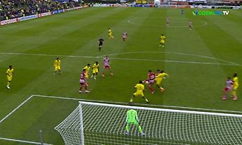 Στο 34’, ο Ολυμπιακός είχε μια τεράστια στιγμή να ανοίξει το σκορ με τον Παπακανέλλο να βγάζει υπέροχη κάθετη στον Μπάμπη Κωστούλα, ο οποίος ωστόσο νικήθηκε σε τετ-α-τετ από το Μαμπόν! Τέσσερα λεπτά αργότερα, ήρθε η απάντηση των «καναρινιών», με τον στόπερ, Ντιγκάρ, να αστοχεί εξ επαφής σε κεφαλιά έπειτα από εκτέλεση φάουλ και ενώ ο Σίνα ήταν εξουδετερωμένος.
