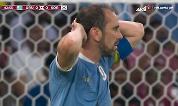 Η Ουρουγουάη απάντησε με τον Γοδίν στο 43ο λεπτό, ωστόσο η κεφαλιά του έμπειρου στόπερ κατέληξε στο δοκάρι, με το 0-0 να παραμένει έως τη λήξη του πρώτου ημιχρόνου.