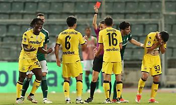 Ο δεξιός μπακ των «πράσινων» έκανε μαρκάρισμα με το πόδι στον Κοσταρικανό, με τη Φραπάρ να του δείχνει την κόκκινη κάρτα.