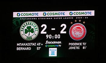 Μετά από ένα χορταστικό αλλά και… επεισοδιακό ντέρμπι, Παναθηναϊκός και Ολυμπιακός ήρθαν ισόπαλοι με 2-2 στο «Απόστολος Νικολαΐδης», για την 10η και τελευταία αγωνιστική των playoffs της Stoiximan Super League.