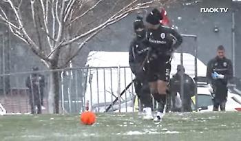 Χθες η προπόνηση του «Δικεφάλου του Βορρά» έγινε με χιονιά, όμως οι παίκτες δούλεψαν κανονικά υπό τις οδηγίες του Ραζβάν Λουτσέσκου, ο οποίος έδωσε ιδιαίτερη έμφαση στο πως οι Θεσσαλονικείς θα εκμεταλλευτούν τους κενούς χώρους αλλά και πώς θα αντιδράσουν στις στιγμές που θα αρχίσει το πρεσάρισμα από τους Βέλγους.