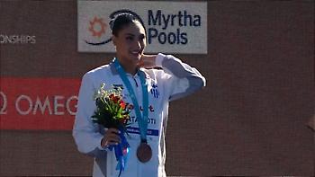 Η αθλήτρια της team future της bwin κατέκτησε την τρίτη θέση στο τεχνικό σόλο της καλλιτεχνικής κολύμβησης, που αποτελεί το πρώτο για την Ελλάδα σε παγκόσμιο επίπεδο στο άθλημα.