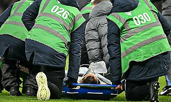 Το ιατρικό επιτελείο των γηπεδούχων έσπευσε να φροντίσει τον Ουρουγουανό, που βγήκε με φορείο από τον αγωνιστικό χώρο, την ώρα που οι πρώτες πληροφορίες αναφέρουν ότι χτύπησε στο κεφάλι ή τον λαιμό στην προσπάθειά του να βρει την μπάλα...