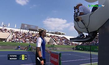 Ο Στέφανος Τσιτσιπάς έπειτα από 1 ώρα και 51 λεπτά αναμέτρησης με τον Ντανιίλ Μεντβέντεφ και εν μέσω έντονου εκνευρισμού για τις αποφάσεις του διαιτητή, ηττήθηκε 2-0 σετ με 7-6(3) και 6-3.