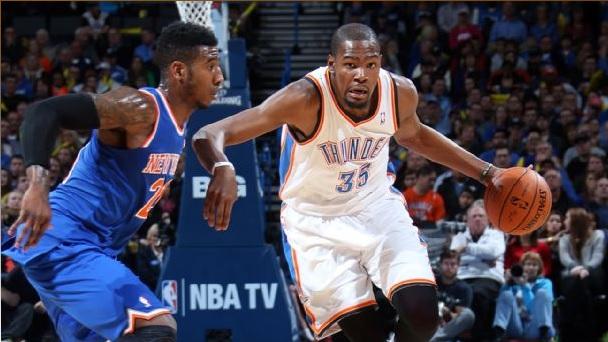 Ο Κέβιν Ντουράντ έσπασε το φράγμα των 40 πόντων για έβδομη φορά φέτος οδηγώντας τη Θάντερ στο 112-100 επί των Νικς. Ο σούπερ σταρ της Οκλαχόμα είχε 41 πόντους, 10 ριμπάουντ και 9 ασίστ κερδίζοντας κατά κράτος τη μονομαχία με τον Καρμέλο Άντονι, ο οποίος έμεινε στους 15 πόντους με 5/19 σουτ.