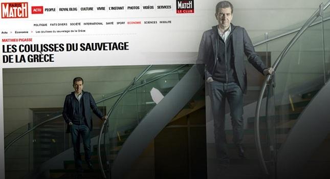 Ένα ιδιαίτερα αποκαλυπτικό ρεπορτάζ για την πρόσληψη της γαλλικής τράπεζας "Lazard" από την κυβέρνηση των Αθηνών φιλοξενεί το γαλλικό περιοδικό «Paris Match», με τον γενικό διευθυντή της, Ματιέ Πιγκάς, να δηλώνει ότι έχει γίνει η... σκιά του Αλ. Τσίπρα και του Γ. Βαρουφάκη. Ο Γάλλος τραπεζίτης , δίνοντας μία γεύση από τις προσπάθειες της ελληνικής κυβέρνησης να αποφύγει την χρεοκοπία, εξηγεί πως όταν οι τρεις τους δεν μιλούν στο τηλέφωνο, ανταλλάσσουν συνεχώς SMS και μένουν πολλές ώρες ξάγρυπνοι για ένα καλό αποτέλεσμα. Για τον Πιγκάς μία έξοδος της Ελλάδας από το ευρώ, είναι ο Αρμαγεδδών, ήτοι ένα σενάριο της αποκάλυψης.