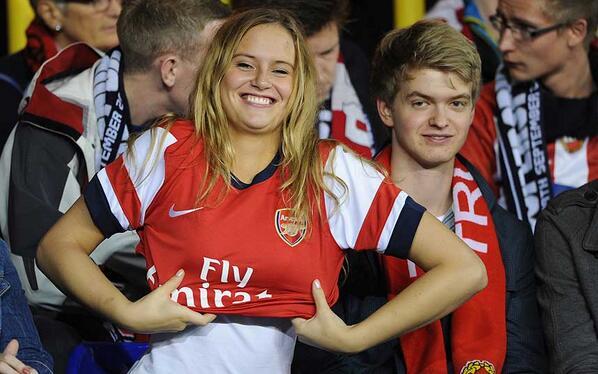 Αμέσως η φωτογραφία της έκανε τον κύκλο του διαδικτύου και των social media με τους οπαδούς των «κανονιέρηδων» να αποθεώνουν την ξανθιά κοπέλα.
