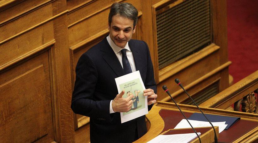 Ο αρχηγός της αξιωματικής αντιπολίτευσης, Κυριάκος Μητσοτάκης, χρησιμοποίησε στην ομιλία του στη Βουλή ένα σκίτσο του γνωστού σκιτσογράφου Αρκά.