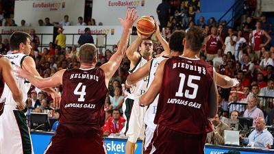 Στο πρώτο δεκάλεπτο οι Πορτογάλοι έβρισκαν πιο εύκολα τις λύσεις μέσα και έξω από τη ρακέτα και κατάφεραν να προηγηθούν με +8, δείχνοντας πως μπορεί να μπουν «σφήνα» στα τρία φαβορί. Στη δεύτερη περίοδο, οι Λετονοί είχαν τη μοναδική τους αναλαμπή στην αναμέτρηση και με σερί 9-1 οι πρώην Σοβιετικοί πέρασαν μπροστά με έναν πόντο, χάρη στους Τζαχόβικς, Σκέλε και Μπιέντρινς. Τελικά, οι Ίβηρες αντεπιτέθηκαν και κατάφεραν να «κλείσουν» το ημίχρονο στο +4.