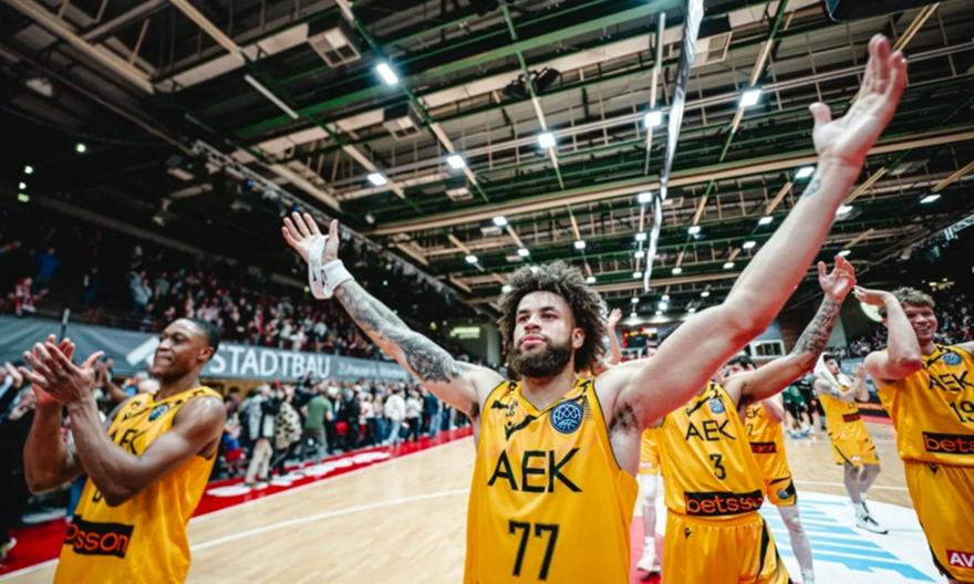 Τεράστια νίκη για την ΑΕΚ στη Γερμανία, η οποία κέρδισε τη Βίρτσμπουργκ 77-71, πάτησε στην κορυφή του ομίλου και βρίσκεται με το 1,5 πόδι στα προημιτελικά του Basketball Champions League!