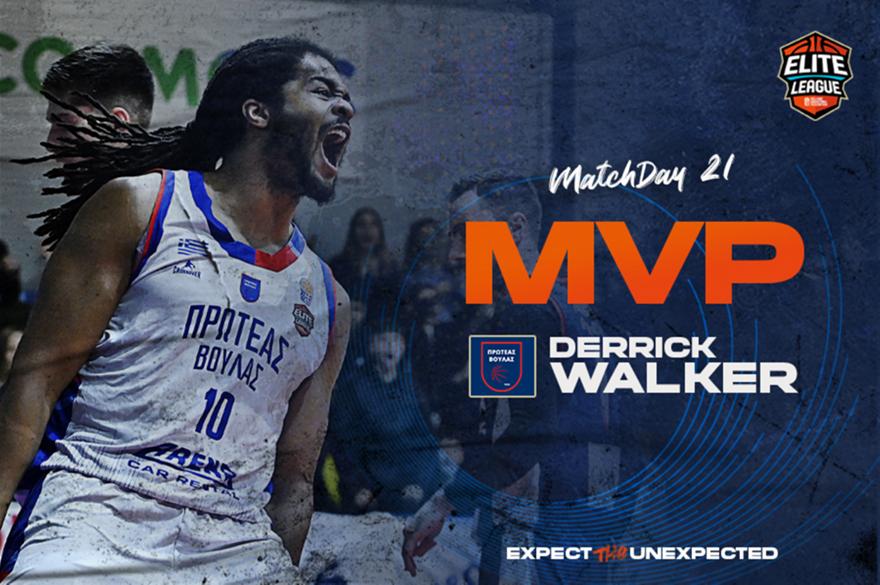 Ο Ντέρικ Γουόκερ αναδείχθηκε πολυτιμότερος παίκτης στην 21η αγωνιστική της Elite League, που ολοκληρώθηκε χθες με την εξ αναβολής αναμέτρηση του ΑΟ Μυκόνου με την Ελευθερούπολη.