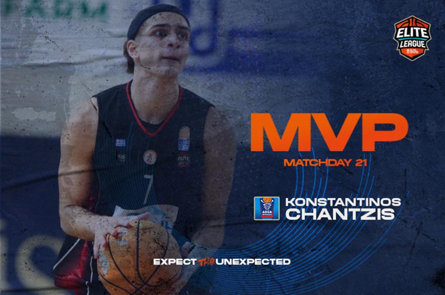 Ο Κωνσταντίνος Χαντζής πήρε όλα τα βραβεία στην 21η αγωνιστική της Elite League, καθώς αναδείχθηκε πολυτιμότερος παίκτης αλλά και MVP Next Gen.