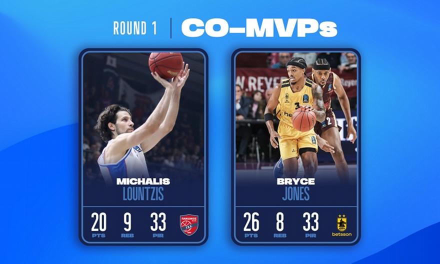 Οι δύο ελληνικές ομάδες άρχισαν με νίκη τις υποχρεώσεις τους στο Eurocup και μοιράζονται και τον τίτλο του MVP στην πρώτη αγωνιστική. Ο Μπράις Τζόουνς του Άρη και ο Μιχάλης Λούντζης του Πανιωνίου είχαν από 33 βαθμούς στο σύστημα αξιολόγησης.