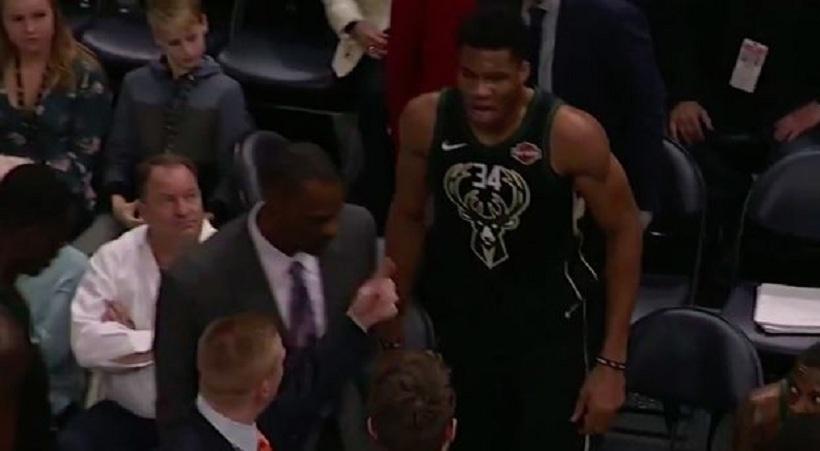 Το χρονόμετρο έδειχνε 4’18” πριν την λήξη της τρίτης περιόδου και ο Greek Freak έκανε λάθος στην επίθεση, με αποτέλεσμα η ομάδα του δεχθεί καλάθι στον αιφνιδιασμό και ο Κιντ να καλέσει τους παίκτες του στον πάγκο. Ο Γιάννης είχε έντονο διάλογο με τον Σουίνι, η κάμερα κατέγραψε την ένταση και αυτόματα το θέμα πήρε διαστάσεις.