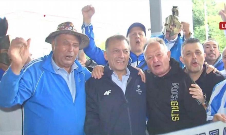 Συνάντησα μέσα [στο αεροπλάνο] από τον Άρη, από τον ΠΑΟΚ, φιλάθλους, από την ΑΕΚ, από τον Ολυμπιακό, από τον Παναθηναϊκό. Όλοι μια γροθιά. Εδώ δεν υπάρχει χρώμα. Υπάρχει μόνο το εθνόσημο. Έχουν έρθει απ’ όλα τα μέρη του κόσμου. Παιδιά από τη Σουηδία, είδα από την Ελβετία παιδιά, τη Γερμανία… Θα είναι υποστηρικτές, ο έκτος παίχτης. Με τη νίκη. Καλή επιτυχία παιδιά!».