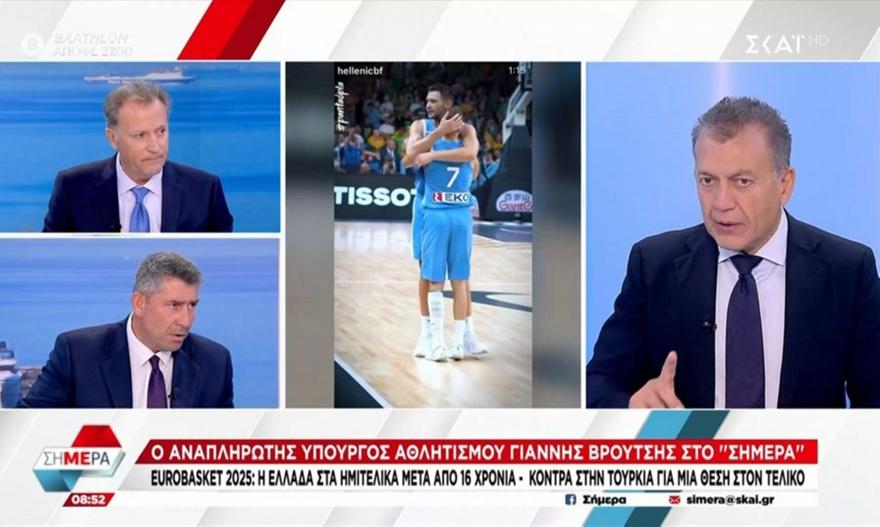 Για την πρόκριση της Ελλάδας στα ημιτελικά του Ευρωμπάσκετ, το ενδεχόμενο να φιλοξενήσει η Αθήνα το επόμενο Final 4 της Ευρωλίγκας, αλλά και τον νέο αθλητικό νόμο αναφέρθηκε ο Γιάννης Βρούτσης μέσω του ΣΚΑΪ.
