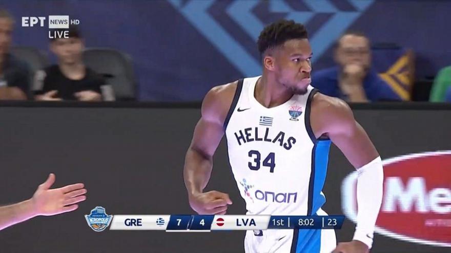 Η Ελλάδα αντιμετωπίζει τη Λετονία στο ΟΑΚΑ, με τον Γιάννη Αντετοκούνμπο να κάνει πρεμιέρα αυτό το καλοκαίρι με το εθνόσημο στο στήθος και να ξεκινά φορτσάτος, σημειώνοντας διαδοχικά καλάθια και καταγράφοντας δύο τάπες στα πρώτα λεπτά.