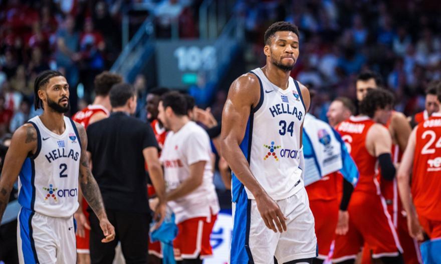Εγκλωβισμένος ο Γιάννης Αντετοκούνμπο στο πρώτο ημίχρονο του ημιτελικού της Εθνικής μας με την Τουρκία.