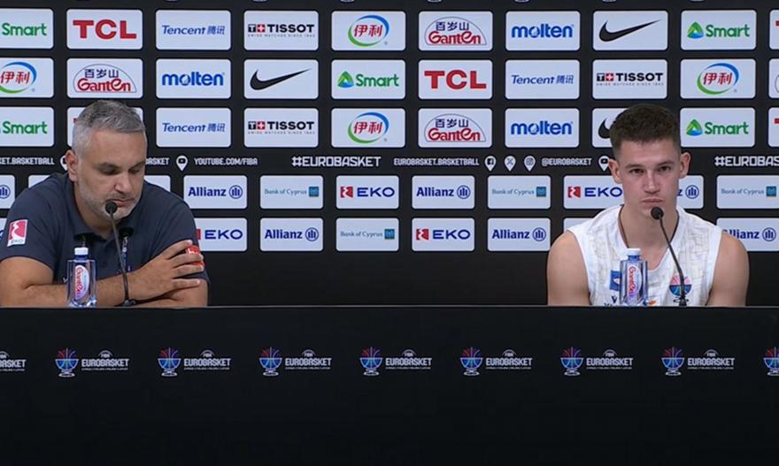 Χριστόφορος Λειβαδιώτης: «Θέλω να εκφράσω την απογοήτευσή μου για την απουσία πολλών δημοσιογράφων από τη συνέντευξη Τύπου, ειδικά συμπατριωτών μας. Για μένα αυτό είναι ασέβεια και θέλω να το πω. Όχι για μένα, αλλά για τους παίκτες μου και την προσπάθειά τους. Το σημερινό παιχνίδι ήταν ιστορικό, κάτι μοναδικό. Θέλαμε να το απολαύσουμε από τη μία, αλλά ταυτόχρονα να κάνουμε το καλύτερο στο γήπεδο. Αυτό που μου άρεσε περισσότερο ήταν ότι ελέγξαμε τα συναισθήματά μας και παίξαμε μπάσκετ. Οι Έλληνες παίκτες είχαν την εμπειρία, οι δικοί μου παίκτες δεν παίζουν πάντα σε ένα τόσο γεμάτο γήπεδο. Ήμασταν αξιοπρεπείς για μεγάλο διάστημα του αγώνα. Θέλαμε να προστατεύσουμε στο τέλος τον Φίλιππο Τίγκα, γιατί είχε μια ενόχληση και θέλουμε να είναι διαθέσιμος στα επόμενα παιχνίδια. Ξέραμε ότι η Ελλάδα έκανε ροτέισον, δεν έπαιξε και ο Γιάννης Αντετοκούνμπο, αλλά έχουν δώδεκα υψηλού επιπέδου παίκτες».