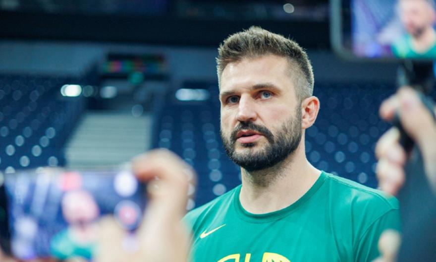Ο Λίνας Κλέιζα βρίσκεται στη Ρίγα της Λετονίας ως μέλος της εθνικής ομάδας της Λιθουανίας, κάνοντας δηλώσεις ενόψει του επερχόμενου προημιτελικού της χώρας του με την Εθνική μας.
