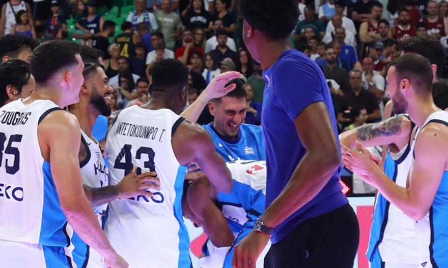 Το φιλικό χτύπημα του Αντετοκούνμπο στον Γιαννούλη Λαρεντζάκη λίγο μετά το ματς με το Μαυροβούνιο στη Θεσσαλονίκη έγινε viral, αλλά και παρεξηγήθηκε.