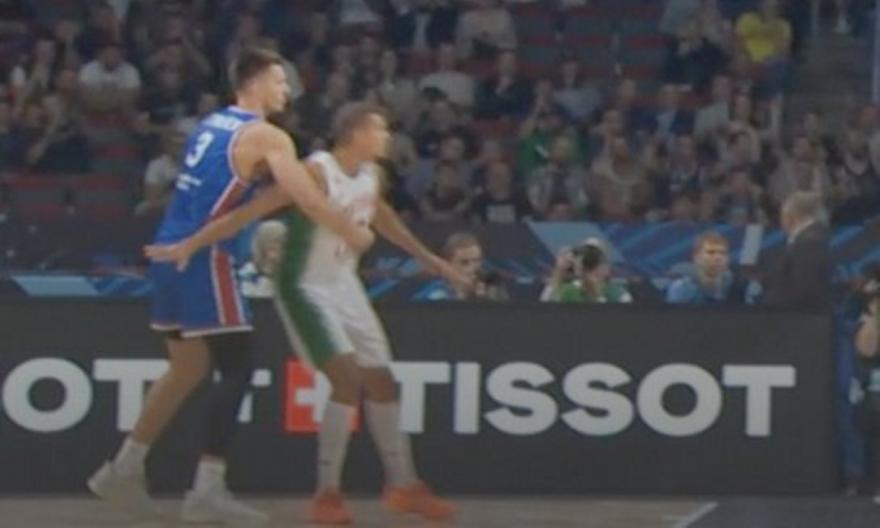 Filip Petrusev je iskljucen 5 minuta nakon pocetka utakmice zbog udaranja protivnika u stomak #EuroBasket ??????