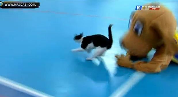 Με… άγριες διαθέσεις περιμένει η μασκότ της Μακάμπι τον Παναθηναϊκό. Ο «Ντόνι», όπως αποκαλείται, έβαλε στο μάτι μία γάτα και βούτηξε στο παρκέ για να την αρπάξει. Εκείνη του ξέφυγε και «χάθηκε» στο πλήθος.