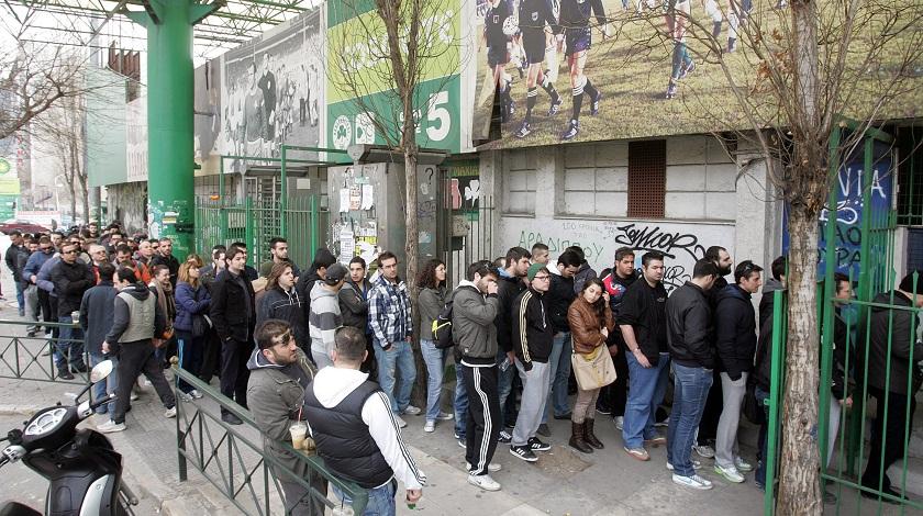 Τεράστιες ουρές σχηματίστηκαν -από το πρωί του Σαββάτου (31/3)- στα εκδοτήρια της Λεωφόρου Αλεξάνδρας από τους φίλους του Παναθηναϊκού, προκειμένου να προμηθευτούν ένα εισιτήριο για την πέμπτη αναμέτρηση των «πρασίνων» στα προημιτελικά της Ευρωλίγκας κόντρα στη Μακάμπι Τελ Αβίβ.
