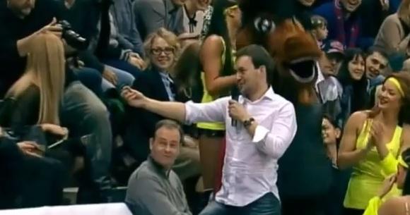 Ένας οπαδός των Μοσχοβιτών πλησίασε μεταμφιεσμένος στη μασκότ της ομάδας και συνοδεία τσιρλίντερ τη σύντροφό του.