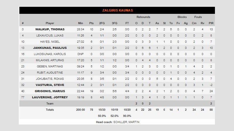 Για τους ηττημένους πρώτος σκόρερ ήταν ο Γκριγκόνις (19π.) ενώ 10π. με 7 ασ. είχε ο Γουόκαπ.