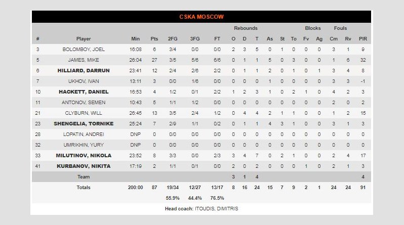 Ο Τζέιμς είχε 27 πόντους με 5/6 τρίποντα (ένα εκ των οποίων έκρινε ουσιαστικά και το ματς), 5 ασίστ και 1 ριμπάουντ, δείχνοντας ότι τα χειρότερα είναι πλέον πίσω. Άξιοι συμπαραστάτες για τον Τζέιμς ήταν οι Κλάιμπερν (13π.) και Χίλιαρντ (12π.), ενώ ο Μιλουτίνοφ μπορεί να μην σκόραρε πολύ (8π.), αλλά είχε 7 ριμπάουντ, βοηθώντας πολύ και στην άμυνα.