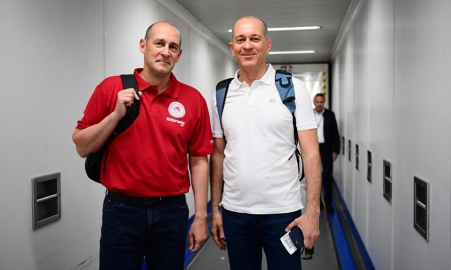 Μαζί με την «ερυθρόλευκη» αποστολή ταξιδεύουν και οι Παναγιώτης και Γιώργος Αγγελόπουλος. Οι ισχυροί άνδρες της ομάδας θα βρίσκονται στο πλευρό παικτών, προπονητή και σταφ, ώστε να τους τονώσουν το ηθικό ενόψει των σπουδαίων αναμετρήσεων.