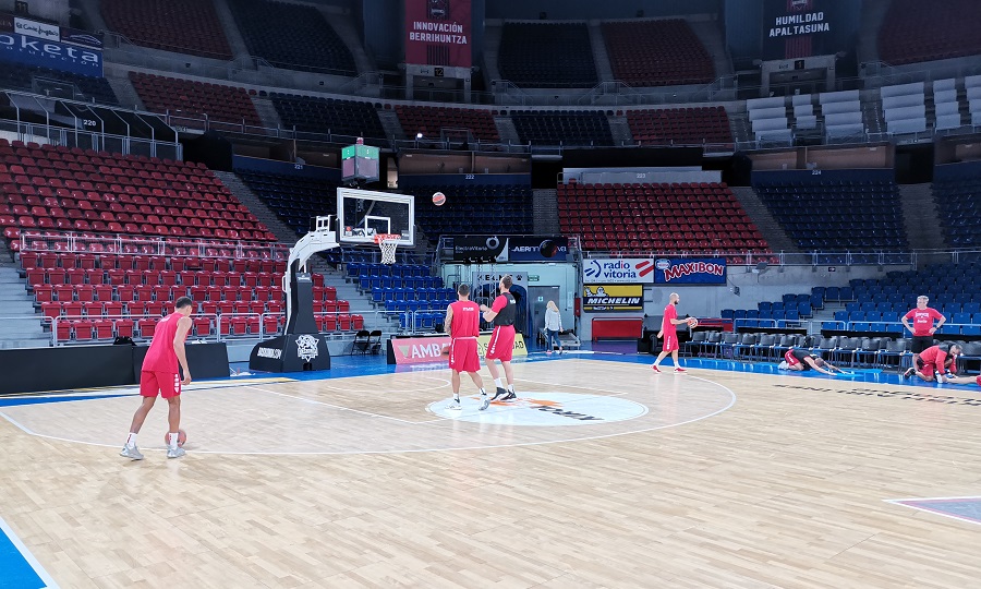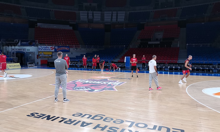 Έπειτα από ταξίδι σχεδόν οκτώ ωρών, η αποστολή του Ολυμπιακού έφτασε στη Βιτόρια και οι παίκτες πήγαν κατευθείαν στο γήπεδο για προπόνηση.