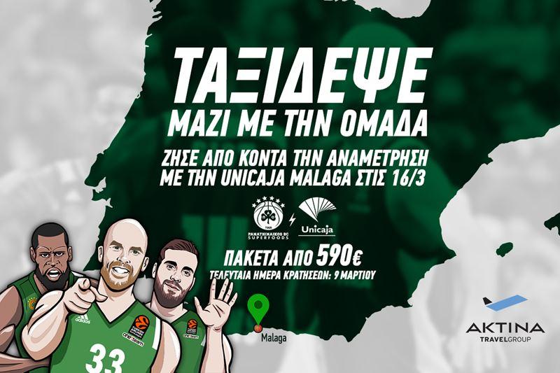 Ζήστε τη μοναδική εμπειρία να ταξιδέψετε μαζί με τους νταμπλούχους Ελλάδας 2017 στην ιδιωτική πτήση για τη Μάλαγα, να διαμείνετε στο ίδιο ξενοδοχείο με την ομάδα (με πρωινό), να γνωρίσετε τους αθλητές και το τεχνικό επιτελείο και να παρακολουθήσετε τον σημαντικό αγώνα με την Ουνικάχα Μάλαγα (16/3, 22.00) από τις εξέδρες του «Palacio de Deportes Jose Maria Martin Carpena».