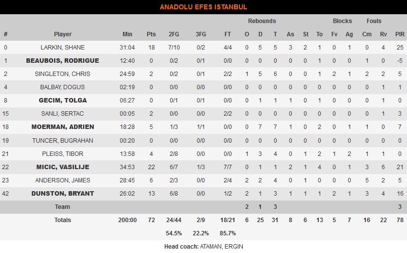 Κορυφαίοι των νικητών ήταν οι Μίσιτς με 22 πόντους και Λάρκιν με 18 πόντους, 5 ριμπάουντ και 3 ασίστ, ενώ πολύ καλή παρουσία είχε και ο Ντάνστον με 13 πόντους και 3 ριμπάουντ. Από πλευράς ηττημένων, τον τίτλο του πρώτου σκόρερ μοιράστηκαν οι Λάιτι και Χάουαρντ, που πέτυχαν από 14.