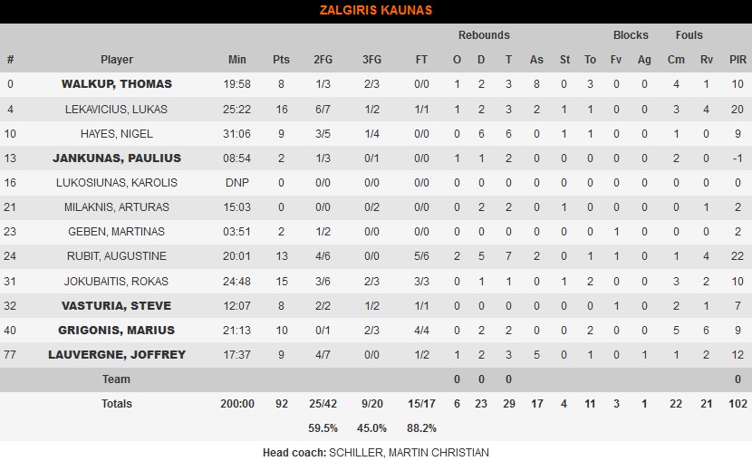 Κορυφαίοι παίκτες των νικητών ήταν οι Πάντερ και Λεντέι, που πέτυχαν 22 και 20 πόντους αντίστοιχα, ενώ άξιοι συμπαραστάτες τους ήταν οι Σιλντς με 17, Ντιλέινι με 13 και Χάινς με 10. Από πλευράς ηττημένων, πρώτος σκόρερ ήταν ο Λεκαβίτσιους με 16, ενώ ο Γιοκουμπάιτις είχε 15.