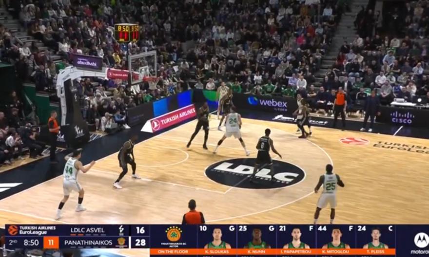 Ο 35χρονος Γερμανός σέντερ δεν χρειάστηκε πολύ χρόνο για να ανοίξει λογαριασμό με τα «πράσινα», σκοράροντας το πρώτο του καλάθι με τη νέα του ομάδα με ένα όμορφο χουκ.