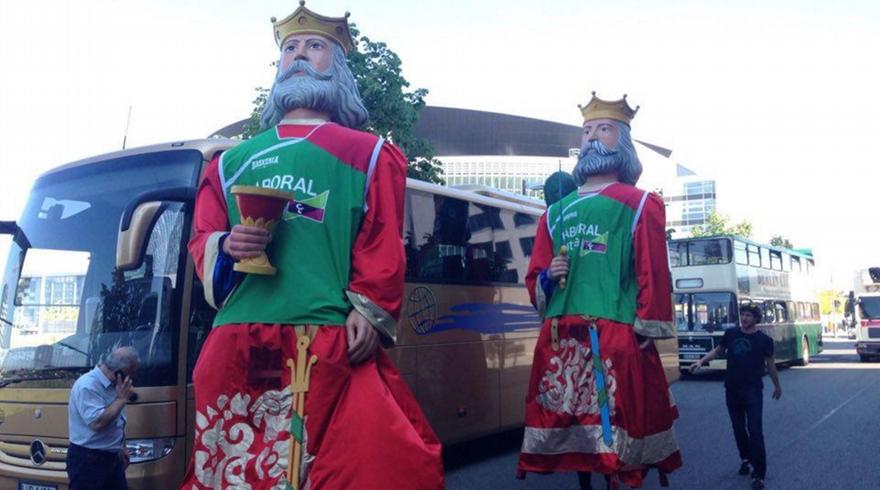 Τις εντυπώσεις έκλεψαν οι «γίγαντες» που ήταν ντυμένοι στα χρώματα της Λαμποράλ, που κυκλοφορούσαν έξω από τη Mercedes Benz Arena.